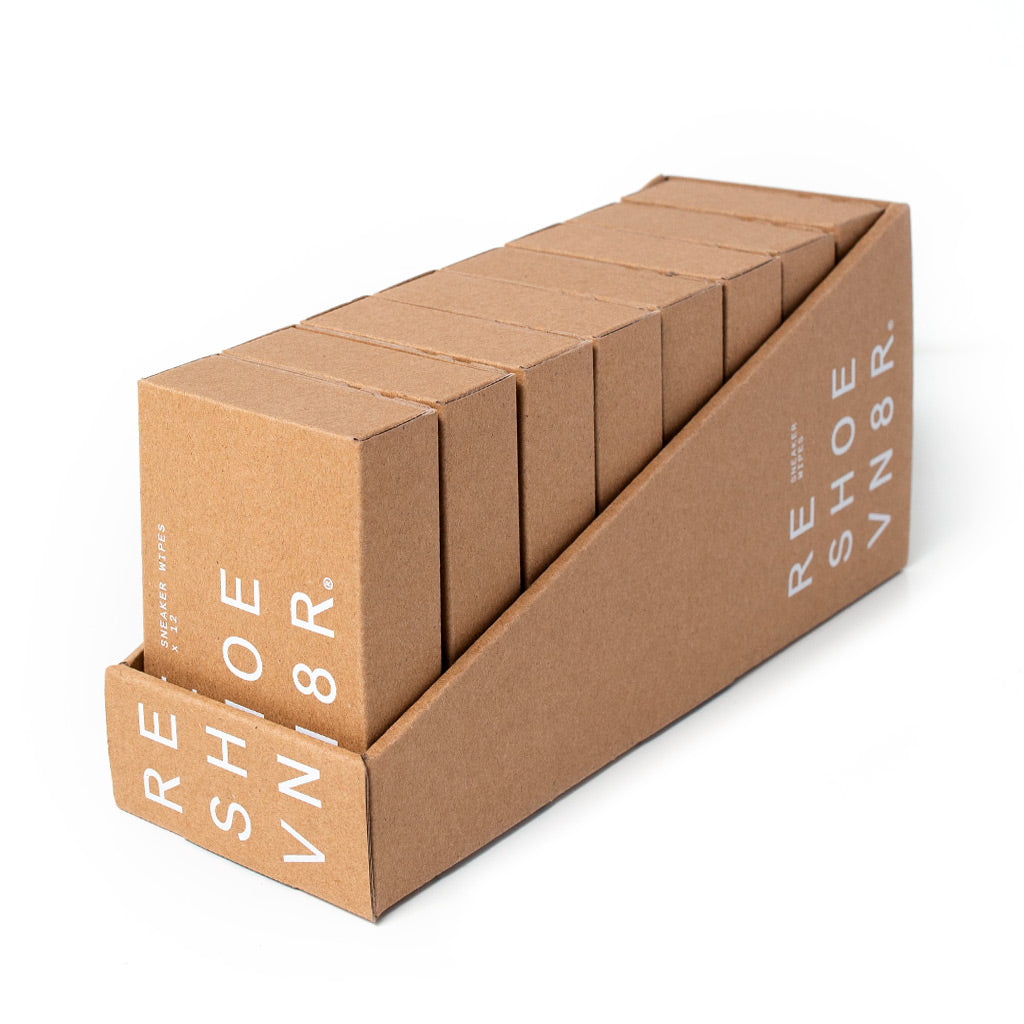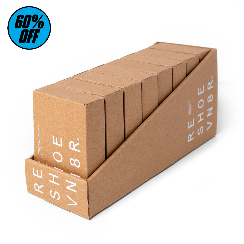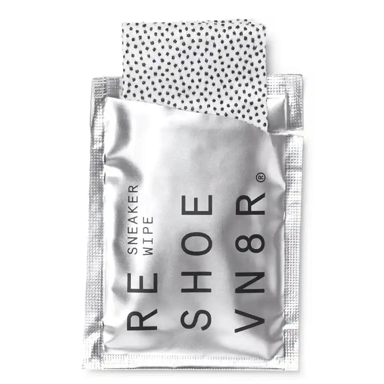 Las toallitas para zapatillas RESHOEVN8R son la solución "portátil" para una limpieza rápida. Cada toallita tiene un lado suave y otro con textura para garantizar que puedas realizar limpiezas tanto pesadas como ligeras. Son aptas para usar en: cuero, plástico, vinilo y goma.