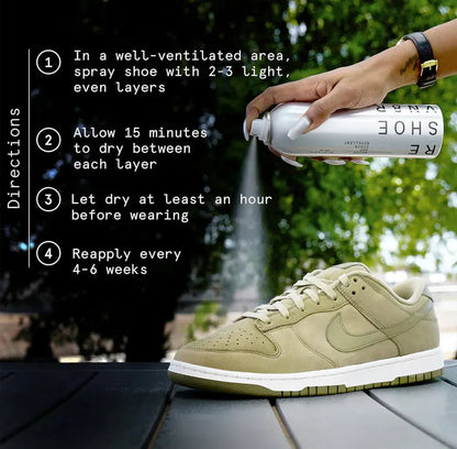 Proteja casi cualquier material en segundos con el repelente de agua y manchas RESHOEVN8R. Nuestra fórmula de secado rápido crea una barrera de 360 grados contra daños por agua, manchas y más. Aplique, deje secar y luzca sus zapatos con confianza.